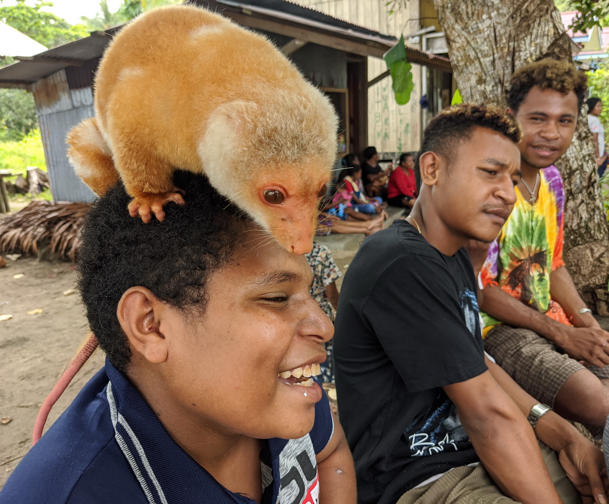 This is a boy and his cuscus! A delightful little marsupial, related to possums, that live in New Guinea and Australia.